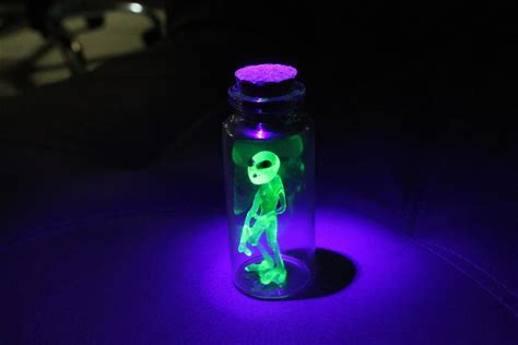 Uranium Glass Of Alien Figure, Glow In The Dark Alien Specimen In A