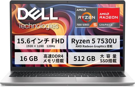 Dell 15 ノートパソコン DC15255 AMD Ryzen 5 7530U メモリ16GB SSD 512GB 15.6インチFHD 1920X1080 Windwos 11 Home プラチナシルバー (2025春モデル)
