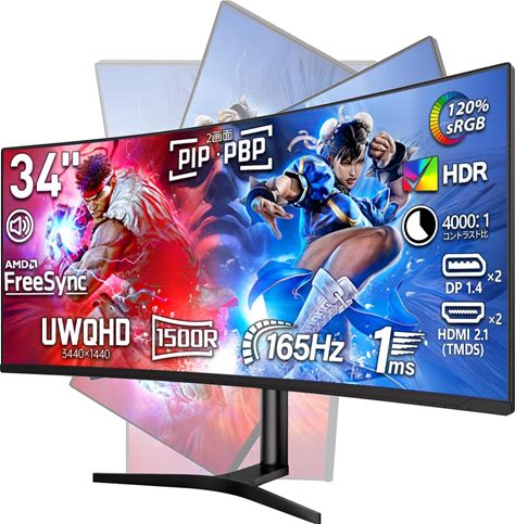 JAPANNEXT 34インチ IPSパネル搭載 165Hz/1Ms(MPRT)対応 UWQHD(3440×1440)解像度 ゲーミングモニター JN-IPS34G165UQ2 HDMI Displayport HDR PS5:WQHD:120Hz接続 PIP/PBP アスペクト比 21:9 【2年
