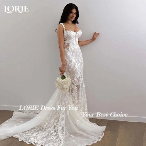Mermaid Wedding Dress For Bride Spaghetti Lace Pearls Wedding Dresses