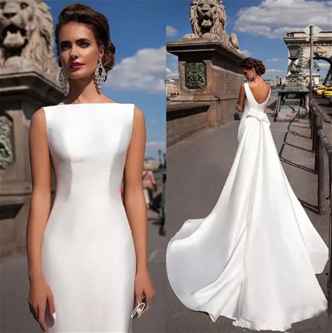 Elegant Mermaid Wedding Dresses Bateau Neck Backless Bride Gowns With